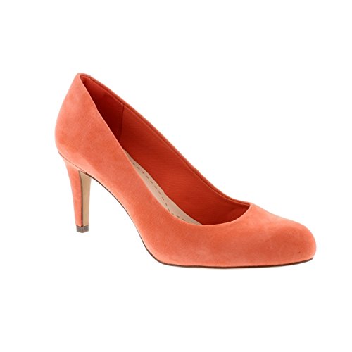 Carlita Cove, women's high heels, coral suede - Make a statement while looking effortless in a pair of mid-height court shoes. The coral suede will add a pop of colour to outfits this summer, while the feminine style and 8cm stiletto heel adds elegance. With our unique Cushion SoftTM technology underfoot, this is the perfect style to take you from to day to night.